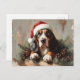 Basset Hound in a Santa Hat Oil Painting Postcard
