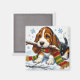 Basset Hound Puppy in Snow With Scarf and Branch Magnet