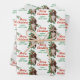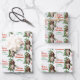 The repeated pattern on these Christmas wrapping paper sheets is an image of an adorable Basset Hound dog sitting among green holly with red berries. The red and green text says "Merry Christmas" and "Happy New Year". The background on two of the sheets in this set is white, while the third sheet is silver.