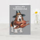 The image is generative content. I enjoy making basset hounds holding things in their mouth so I thought why not have the basset hound wearing a pilgrim hat and holding a turkey in its mouth for a thanksgiving design. The text on the front of the card and inside is able to be edited so you came personalise the design.