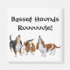 Original fine art design of a howling tricolored Basset hound by designer Carolyn McFann on quality cards, stationery, clothing & other great gifts for dog lovers.