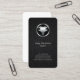 This strong, elegant bassist business card design features a subtle dark black grunge texture in the background. The upper portion of the card has a medium sized chrome icon of a bass guitar headstock. Your name and title appear in the middle, in bright easy to read letters, while your contact details appear on the lower portion of the card in smaller but clean and legible letters. Perfect for music, entertainment, showbusiness, musician themes, but can be used for almost any business or industry.