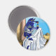 A lovely and colourful kitty masquerades as the Egyptian goddess Bast on this whimsical magnet.
