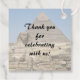 Set of 12 square favour tags with an image with an image of a brass statue of the Ancient Egyptian Goddess Bastet and a description of her on a washed out image of an Egyptian pyramid and the Sphinx. The back has the washed out image of the Egyptian pyramid and the Sphinx and customisable text. Bastet, known today as the "Cat Goddess," is the goddess of sensual pleasure, protector of the household, bringer of health and the guardian saint of firefighters. See the entire Goddess Favour & Gift Tag collection in the SPECIAL TOUCHES | Party Favours section.