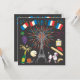 Celebrate Bastille Day with this fun invitation! Eiffel Tower, Champagne, brie cheese, french poodle, baguettes, French perfume, barret, escargot, French flags and fireworks against a black night sky. Hand drawn illustration by McBooboo.