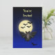 As the invitation depicts, it is getting dark / late as the sky turns from a deep blue to black. The full moon silhouettes the spooky critter sent as a messenger with your invitation.