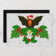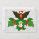 Bat with santa hat hangs out in sprigs of holly with red berries. Great way to celebrate a very batty Christmas.