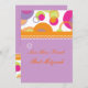 Splash of bright and cheerful colour take you back in time... retro... mod bubbles for your daughter's Bat Mitzvah.. Hot pink is no doubt the most eye catching colour and very trendy this season come complete with mandarin orange and lime. The background can be customised for any special occasion, i.e., birthday open house, etc. Fully customisable, change your background colour. Copyright © 2010 PixDezines.com and PixDezines on zazzle.com
