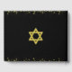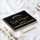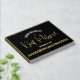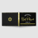 Let your favourite Bat Mitzvah be proud, rejoice and celebrate her milestone with this stunning keepsake scrapbook real gold foil guestbook. On the front, stunning, modern, sparkly gold foil handwritten script, Star of David and tiny dots overlay a dramatic black background. The customisable spine is real gold foil. And on the back, additional real gold foil confetti and Star of David overlay black. Personalise the custom text with her name and date of event. Choose from 3 real foil colours (gold, silver and rose gold), 3 sizes (9”x6”, 10.5”x8.25” and 12”sq) and 3 papers (blank white, lined white and black). Guaranteed to add stylish memories of her occasion. Matching and coordinating invites, envelopes, address labels, stickers, napkins and other Bat Mitzvah goodies are also available in this trendy and special collection.