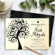 Be proud, rejoice and showcase this milestone of your favourite Bat Mitzvah! This graphic, black tree of life with sparkly Star of David and dot “leaves” with black calligraphy script on a sophisticated, real gold foil background, is the perfect invitation for this special occasion. A faux gold Star of David overlays a black ombre deco pattern background on the back. Personalise the custom text with your Bat Mitzvah’s name, date, and venue information. Send this out for an event to remember!