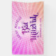 Be proud, rejoice and showcase this milestone of your favourite Bat Mitzvah! Hang up this boho, retro, personalised banner to add to her special day. Fun, trendy, bold dark hot pink and purple typography with modern sans serif typography overlay a background of pop light orange and pink ombre gradient rays with white dots. Personalise the custom text with your Bat Mitzvah’s name and date or custom message. Guaranteed to preserve cherished memories of her special occasion! Matching and coordinating invites, address labels, stickers, keepsake binders, and other Bat Mitzvah goodies are also available in this trendy and special collection.