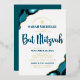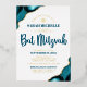 Be proud, rejoice and showcase this milestone of your favourite Bat Mitzvah! Send out this cool, unique, modern, personalised real gold foil invitation for an event to remember. Dark teal blue script typography, real gold foil sans serif typography, and a real foil gold Star of David overlay a simple, clean white background with turquoise blue agate accented with real gold foil gold veins. Personalise the custom text with your Bat Mitzvah’s name, date, and venue information. Guaranteed to add stylish fun to her special occasion!