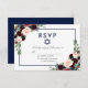 Watercolor Burgundy Marsala Blue Floral Bat Mitzvah Silver RSVP Card