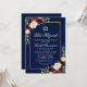 Bat Mitzvah Floral Burgundy Blue Gold Invitation