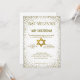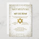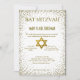 A purple Bat Mitzvah invitation featuring a gold confetti look. Note: This is a graphic art reproduction of art by Amelia Carrie and contains no messy glitter. zazzle.com/GlitterInvitations