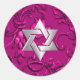 Bat Mitzvah Metallic Embossed Look Damask Magenta Classic Round Sticker