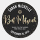 Bat Mitzvah Modern Black Gold Foil Glitter Script Classic Round Sticker