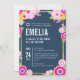 BAT MITZVAH modern bold floral bright navy pink Invitation