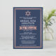 Invite family and friends to an elegant bat mitzvah ceremony and celebration with a stylish custom navy blue, white, and pink rose gold invitation. All text on this template is simple to customise with any wording regarding the service, Torah reading, and party. The design features trendy faux rose gold foil Star of David, classic vintage art deco typography, and modern script calligraphy. Mazel Tov!