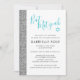 Modern silver glitter and aqua teal blue Bat Mitzvah invitation. Minimal, simple, chic and trendy.