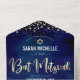 Be proud, rejoice and showcase this milestone of your favourite Bat Mitzvah! Send out this stunning, modern, sophisticated, personalised Hebrew name invitation for an event to remember. Graphic faux gold foil calligraphy script, Star of David, and confetti, overlay a rich, dramatic, navy blue watercolor background. A faux gold Star of David overlays a faux metallic gold ombre background on the back. Personalise the custom text with your Bat Mitzvah’s name, Hebrew name, date, and venue information. Guaranteed to add stylish fun to her special occasion!
