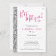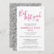 Bat Mitzvah Pink Silver Glitter Modern Hebrew Name Invitation