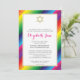 BAT MITZVAH rainbow stripe pattern gold glitter Invitation
