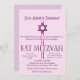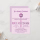 A hot pink Bat Mitzvah invitation featuring a Star of David and glittery gold "Bar Mitzvah" lettering. zazzle.com/GlitterInvitations