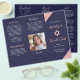Tri-fold Bat Mitzvah program in navy blue and rose gold. Easily edit with your ceremony information