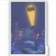 This evocative graphic captures Batman as he oversees Gotham City under the glow of the iconic Bat-Signal. Set against a dramatic night sky, the vibrant yellows and blues create a stark contrast, highlighting the city's sprawling, lit-up skyline and the silhouette of the caped crusader standing vigilant on a rooftop. The Bat-Signal cuts through the darkness, serving as a symbol of hope and a call to action, signalling Batman's unending commitment to safeguarding his city. The composition's dynamic colours and dramatic perspective not only draw attention to Batman's heroic stature but also encapsulate the perpetual struggle between light and shadow in Gotham. This artwork is a powerful portrayal of Batman’s role as the guardian of Gotham, watching over it from the shadows, ever ready to confront the chaos that lurks below.