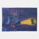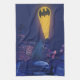 This evocative graphic captures Batman as he oversees Gotham City under the glow of the iconic Bat-Signal. Set against a dramatic night sky, the vibrant yellows and blues create a stark contrast, highlighting the city's sprawling, lit-up skyline and the silhouette of the caped crusader standing vigilant on a rooftop. The Bat-Signal cuts through the darkness, serving as a symbol of hope and a call to action, signalling Batman's unending commitment to safeguarding his city. The composition's dynamic colours and dramatic perspective not only draw attention to Batman's heroic stature but also encapsulate the perpetual struggle between light and shadow in Gotham. This artwork is a powerful portrayal of Batman’s role as the guardian of Gotham, watching over it from the shadows, ever ready to confront the chaos that lurks below.