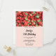 Birthday invitation postcard with a colourful photograph featuring a bunch of luscious red strawberries.
