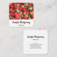 A business card with a colourful photograph featuring a bunch of luscious red strawberries.