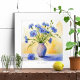 A watercolor painting of a posy of blue bachelor button cornflowers bursts with vibrant colour and delicate detail, the intricate patterns of the flowers' petals, transitioning from deep blues to lighter shades, creating a sense of depth and dimension. . Add your own message or favourite quote or delete the text altogether if not required. You can also choose to purchase a frame from Zazzle or if you prefer from a high street retailer of your choice. To print at home, choose the 'Instant Download Option' and after purchase customise the main text in your Zazzle account. Then go ahead and digitally download to your own PC to print at home.