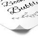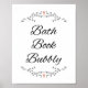This elegant bathroom print features the phrase "Bath Book Bubbly" in a swirl black handwriting and is accented with grey leaves and pink hearts.