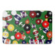 In the 19th century a poolroom was a horse race betting parlour. Pool tables were installed so the bettors could pass time between horse races. Billards, or pool, is the descendant of a game similar to croquet that was played in 15th-century Europe. Though we don't know for sure, it is strongly suspected that billiards came to America with Dutch and English settlers. By the 1700's, skilled cabinet makers were crafting beautiful tables, though the equipment was, otherwise, quite primitive. Fifteen-ball pool came on the scene in the late 1800's and grew in popularity through the 1940's. Billiards was revived in 1961 with the release of the movie THE HUSTLER. It enjoyed another surge in the mid 1980's with the release of the movie sequel, COLOR OF MONEY. Since that time, there has been an evolution of the environs in which we find pool tables -- they're in restaurants and night clubs and sports bars, allowing pool to find a modern audience and new generations of enthusiasts. This marvellous design is layers of billiard balls in varying sizes for greater depth. They are scattered all over a "green felt" backdrop. This fabulous bath mat is a bold and beautiful addition to your man cave, for Father's Day or for your favourite pool shark.