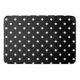 Bath Mat/Black with White Polka Dots Give your feet a sweet treat right after your bath. Featuring a luxury soft memory foam, this bath mat cushions your feet and helps you feel great while you dry off and get ready to face the day. Made out of high density memory foam, this soft rug cushions your feet and feels great while you dry off and get ready for the day. Dimensions: 16” x 24” Material: 85% polyester/15% polyamide. Quick-drying foam core. SBR non-skid backing. Machine washable. Warning: For use outside of the tub. Always place bath rugs on a dry surface before use.