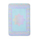 This Sunny Bath mat features a sky blue background with a border of small Boho Medallions in rainbow sherbet colours. The centre is sky blue with a big sunny medallion in the middle. This comes from Oregon Tile maker Fay Jones Day.