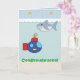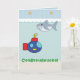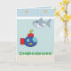 Splash into some fun with this bath time themed design featuring a smiling shark and big round sub floating along in a bathtub that transitions from the mundane blue tile wall, decorated with orange starfish, to a sandy ocean bottom mimicking the fanciful imaginings of a child playing with toys. Customise the seaweed-themed sentiment on the front and the wavy blue one on the interior with your message of choice to create a truly unique card for any baby shower or expectant mother. You can also swap to the note card size to easily turn this into a cute thank you card for after the shower. Be sure to check out the full Bath Time Fancies collection for more great gifts and products for a baby shower or the little one in your life.