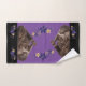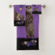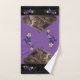Bathtime With Otters Bath Towel Set = Bath time With Otters Bathroom towels. Cute otters and flower fauna in hues of purple on black background theme that you can customise background, colours, images and more. Pictures of otters doing otter things. Cute antics from these creatures of water. You can customise the colours of your towels to match your bathroom theme decor. Great gift for kids and those that love otters.