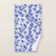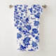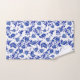 A standard USA sized bath towel set in my historical Jacobean camellia floral print in a fresh, modern Delft blue on alabaster white.