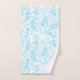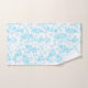 A set of bath towels with hand, face and body sizes, in a lovely English rose in vivid capri blue and white