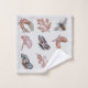 This refreshing Bath towel set features a nature print that includes leaves, dragonflies, bees, and acorns. Copper, grey and light taupe are accent colours. Great choice for your cabin, country cottage or vacation home. These designs come from real handmade tile from Oregon Tile maker Fay Jones Day