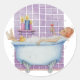 Illustration of a woman enjoying a pleasurable bubble bath, soaking in bubbles, wine in hand and candles lit … the joy of a relaxing break! Wonderful gift for anyone who needs to just stop and enjoy the simple pleasures of life.