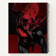 This powerful graphic illustrates Batman in a dynamic action pose, leaping against a backdrop of a blood-red moon and a stormy Gotham skyline. The illustration is steeped in shades of red and black, emphasizing the intensity and danger of the moment. Batman is depicted in full motion, grappling hook in hand, ready to confront the perils that lurk in the night. The city below him is rendered in a detailed wireframe style, suggesting its complexity and the depth of secrets it holds. Rain slashes across the scene, adding to the dramatic tension and the feeling of a high-stakes battle against crime. The artwork conveys Batman's relentless drive and his role as a dark hero in a city that never sleeps, capturing his essence as Gotham’s silent guardian and protector.