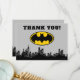 Show your gratitude in superhero style with this action-packed Batman Gotham City thank-you card! Featuring the iconic Gotham City skyline and the Bat-Signal glowing against the night sky, this card adds a bold and exciting touch to your message. With dynamic designs and vibrant colours, it’s the perfect way to thank guests after an unforgettable Batman-themed celebration. Fully customisable to make your appreciation even more personal.