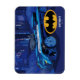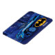 This graphic vividly captures Batman speeding through the neon-lit streets of Gotham City in his iconic Batmobile. Above him, the Bat-Signal shines brightly against a deep blue sky, calling him to duty. The artwork uses a striking colour palette of blues and vibrant yellow highlights, emphasizing the high-speed energy and the futuristic aesthetic of the Batmobile. The urban landscape of Gotham is rendered with bold, exaggerated forms, giving the scene a dynamic and slightly surreal feel. This illustration not only celebrates Batman's role as the guardian of Gotham but also his reliance on technology and cunning to maintain order in a city that never sleeps. The image is a thrilling representation of Batman in action, perfectly blending elements of danger, heroism, and adventure.