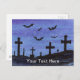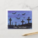 A watercolor landscape of bats in flight over a cemetery at night adorns this customisable Postcard!