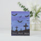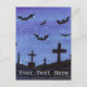 A watercolor landscape of bats in flight over a cemetery at night adorn this customisable postcard!