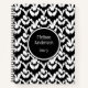 Spiral notebook with personalised name and text print. This notebook comes in a black and white bats horror gothic pattern design. Type your name and text in the template fields to personalise it.